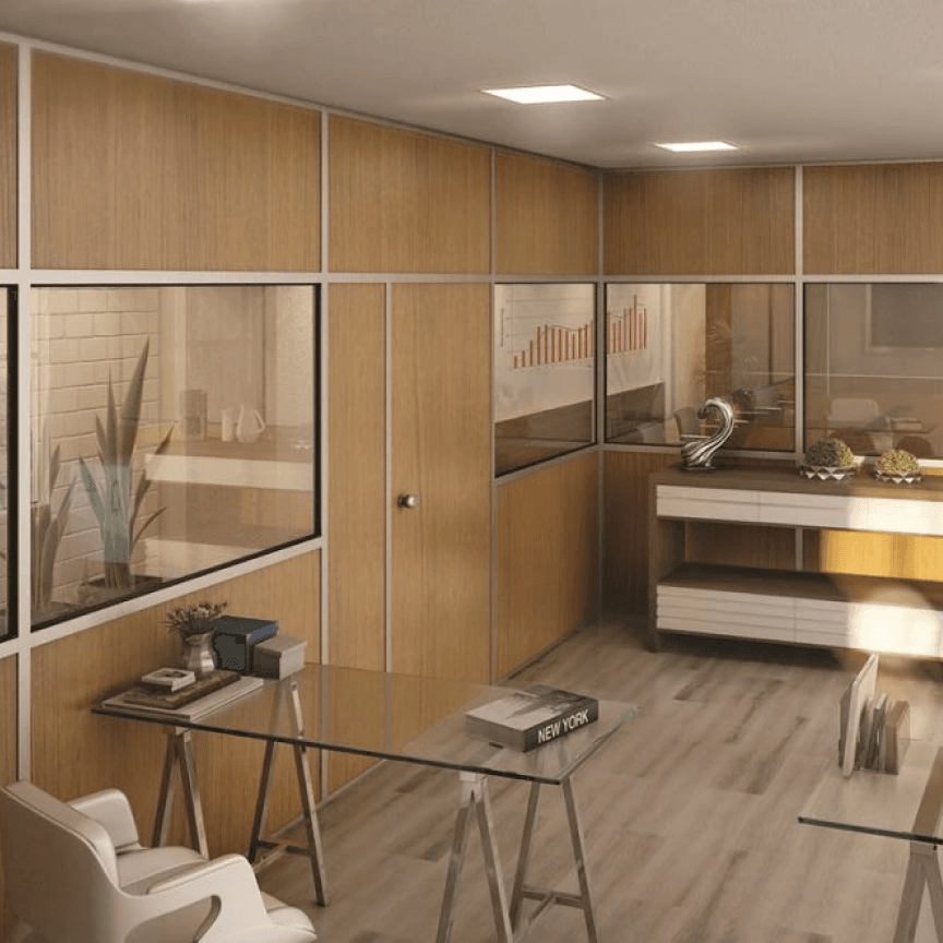 As divisórias de Eucatex oferecem o melhor custo-benefício para a divisão de espaços comerciais e industriais. Com instalação rápida e limpa, elas já vêm com acabamento final, dispensando pintura. São resistentes, versáteis e permitem fácil reaproveitamento em caso de mudanças de layout.