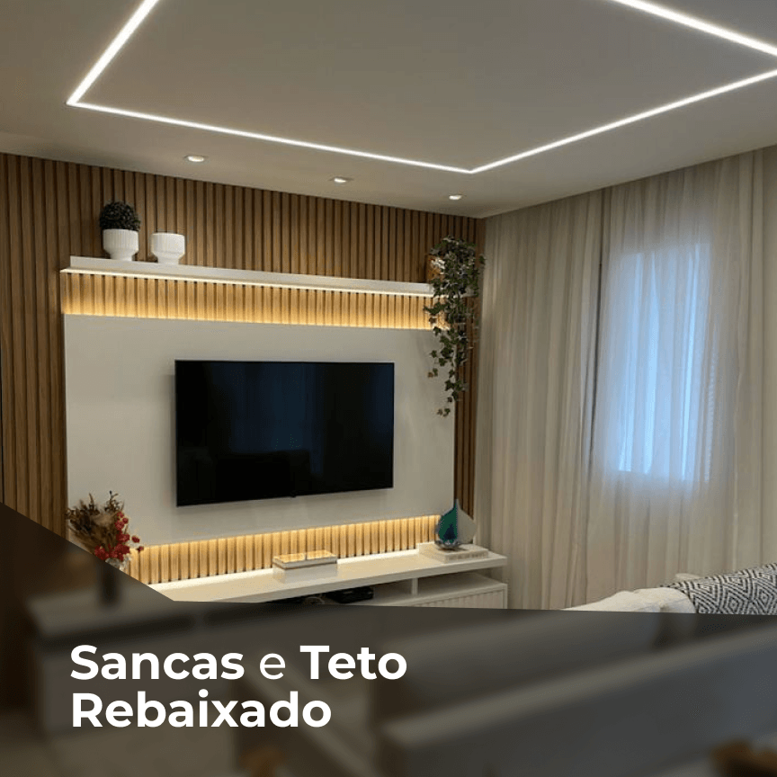 As sancas e o teto rebaixado são elementos essenciais para um acabamento sofisticado. Eles permitem a criação de ambientes modernos e aconchegantes, valorizando a iluminação e o design do espaço. Com essas soluções, você transforma qualquer ambiente em um local elegante e acolhedor.